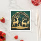 ‘Golden Antler Grove – Snowflake Arch’ captures the quiet magic of a winter’s night in rich emerald and gold. Two graceful reindeer stand beneath a swirling arch of foliage and snowflakes, their ornate antlers echoing the curves of the landscape. Stylised trees and falling snow add depth and wonder, while the circular framing evokes handcrafted charm and seasonal sophistication.