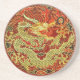 Golden asian dragon embroidered on dark red coaster
