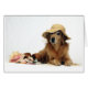 A SNAPshotz photo card for the Golden Retriever lover. Featuring a Golden lying down next to seashells wearing a floppy straw hat, it's perfect for the Golden fan who'd rather be at the beach.