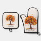 Golden Autumn Trees Happy Thanksgiving Greeting Oven Mitt & Pot Holder Set