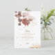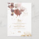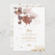 An arrangement of autumn leaves and berries in shades of gold and burgundy splashed with gold dust is the focal point for this beautiful wedding menu. The lower-case, typewritten font and modern layout make this an eye-catching addition to your table decor. A grunge striped pattern of golden brush strokes splashed with gold dust adds interest on the flip side. Add your menu selections, initials and wedding date using the provided template.