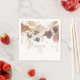An arrangement of autumn leaves and berries in shades of gold and burgundy splashed with gold dust is the focal point for this beautiful paper napkin. The typewritten font style in all lower-case and modern layout make this an eye-catching addition to your table. Add a personal thank you message, your names and wedding date using the provided template.