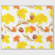 Beautiful and stylish design with autumn leaves in orange and golden yellow colours, wheat straws and acorns pattern.