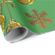 Golden Baubles and Snowflakes Green Christmas Wrapping Paper