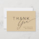Minimalist thank you card template for bridal shower guests. Featuring elegant black calligraphy on a soft golden beige background, this sophisticated design combines modern simplicity and timeless elegance. Personalise it easily with your unique message and special touches, creating a memorable keepsake for your loved ones.