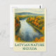 Capture the serene beauty of Latvian nature with this watercolor-style postcard featuring the iconic Gauja River winding through the vibrant autumn forest of Sigulda. The rich hues of gold, orange, and deep green celebrate the magical charm of Latvia’s fall landscape. A perfect keepsake or gift for nature lovers and travel enthusiasts.