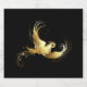 Shiny, golden, artistically painted bird on a black background