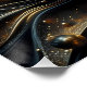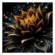 This captivating piece of wall art features a digitally crafted flower that radiates elegance and mystery. At the heart of the composition is a bloom with golden petals rendered in exquisite detail. Each petal glows with a metallic sheen, revealing delicate patterns that convey both precision and organic grace. The flower appears to hover in space, surrounded by swirling dark waves and tendrils that evoke movement and depth.