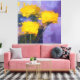Golden Blooms - Floral Wrapped Canvas Art captures the beauty of nature with its bold yellow flowers set against a soft, textured purple background. The vibrant golden petals stand out, creating a striking contrast that draws the eye and brings warmth to any room.