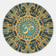 Golden Blue Aum Star Classic Round Sticker