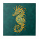 Golden Blue Tribal Seahorse Tile