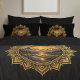 Golden Boho Mandala Mountain Sunset Art | Black Pillowcase