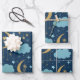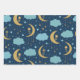 Golden Boho Moon With Flowers Clouds Wrapping Paper Sheet