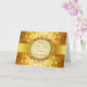 Celebrate the 50th anniversary couple with a card that celebrates this achievement in style. Faux golden bokeh images sprinkle down against a golden gradient background. The main text is highlighted in an ornament held on by a gold ribbon image. The interior contains placeholder text for a special message or delete this text to handwrite your own. Available in alternate colours with matching products.