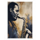 An elegant artwork that translates the soul of jazz into visual form. The saxophonist appears through expressive lines and abstract textures, surrounded by golden tones and deep shadows, symbolizing emotion, improvisation, and sophistication. Ideal for modern spaces and music lovers.