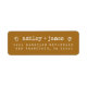 Add a touch of modern romance to your mail with this golden brown couple return address label. Featuring a playful typewriter font, minimalist hearts, and a warm gold-toned background, this design blends rustic charm with timeless elegance. Perfect for weddings, anniversaries, or holiday mail, it’s the ideal way to personalize your correspondence.
