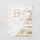 A grunge striped pattern of golden brush strokes splashed with gold dust is the focal point for this beautiful table number card. The lower-case, typewritten font style and modern layout make this an eye-catching addition to your wedding table decor. Add your names, wedding date and table numbers using the provided template.