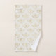 Towel set with an elegant pattern with gold coloured bumble bees in a repeating pattern on a cream coloured background.