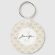 Cute key chain with an elegant pattern with gold coloured bumble bees in a repeating pattern on a cream coloured background.