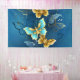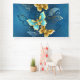 Composition of flying, jewellery, gold and dark butterflies on textured jewellery background. Golden butterfly.
