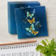 Composition of flying, jewellery, gold and dark butterflies on textured jewellery background. Golden butterfly.