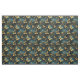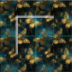 An elegant fabric with a butterflies pattern in glittering golden hues and glowing blues.