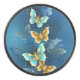 Composition of flying, jewellery, gold and dark butterflies on textured jewellery background. Golden butterfly.