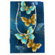 Composition of flying, jewellery, gold and dark butterflies on textured jewellery background. Golden butterfly.