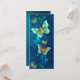 Flying gold, jewellery butterfly on blue textural background. Design with butterflies.