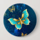 Golden Butterflies on a Blue Background 10 Cm Round Badge