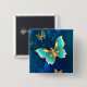 Golden Butterflies on a Blue Background 15 Cm Square Badge
