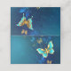 Flying gold, jewellery butterfly on blue textural background. Design with butterflies.