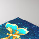 Flying gold, jewellery butterfly on blue textural background. Design with butterflies.