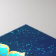 Flying gold, jewellery butterfly on blue textural background. Design with butterflies.