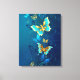 Golden Butterflies on a Blue Background Canvas Print
