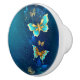 Golden Butterflies on a Blue Background Ceramic Knob