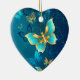 Golden Butterflies on a Blue Background Ceramic Tree Decoration