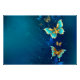 Flying gold, jewellery butterfly on blue textural background. Design with butterflies.