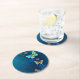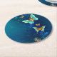 Golden Butterflies on a Blue Background Round Paper Coaster
