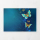 Golden Butterflies on a Blue Background Tri-Fold Announcement