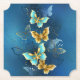 Composition of flying, jewellery, gold and dark butterflies on textured jewellery background. Golden butterfly.