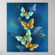 Composition of flying, jewellery, gold and dark butterflies on textured jewellery background. Golden butterfly.