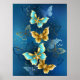Composition of flying, jewelry, gold and dark butterflies on textured jewelry background. Golden butterfly.