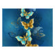 Composition of flying, jewellery, gold and dark butterflies on textured jewellery background. Golden butterfly.