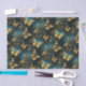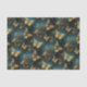 An elegant tissue paper with a butterflies pattern in glittering golden hues and glowing blues.