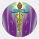 GOLDEN CADUCEUS Medical Symbol Vibrant Purple Classic Round Sticker