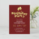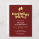 Modern birthday invitation features gold champagne with bold typography text "birthday party" on burgundy background. Personalise the birthday party invites by adding your name and party details.