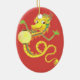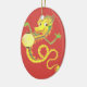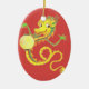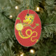 An ornament wth a Golden-effect Chinese Dragon on a deep red background, from a handpainted design by Judy Adamson.