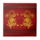 Double Chinese golden Dragons paper-cut with red old Chinese ideogram for Dragon in the centre + "Year of the Dragon". Design on ceramic tile. Matching greeting card, craft products and more soon... Perfect for Chinese New Year of the Dragon or Birthday (people born in Dragon Year).---------- "The Dragon (simplified Chinese: 龙; traditional Chinese: 龍) is one of the 12-year cycle of animals which appear in the Chinese zodiac related to the Chinese calendar. The Year of the Dragon is associated with the Earthly Branch symbol 辰, pronounced chen. It has been proposed by one academic researcher that the Earthly Branch character may have been associated with scorpions; it may have symbolised the star Antares." People born within these date ranges can be said to have been born in the "Year of the Dragon", while also bearing the following elemental sign: 22 January 1928 - 9 February 1929 = Earth Dragon,