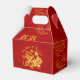 Golden paper-cut of a rat with fruits and flowers + golden Chinese Auspicious clouds (line graphic) + dark red Chinese frames in the four corners (front and back). Design on gable favour box with red background and texts: 2020 and The Year of The Rat to customise if you want. Available in other styles: classic cube, tent, take-out. Matching postcard, greeting card, invitation and more... Perfect for Chinese New Year of the Rat 2020 or birthday (people born in Rat Year).